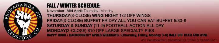 6:00 PM Bonfire, music, and caroling down at the lower parking area of Redstone Inn. Bonfire lighting by the Carbondale and Rural Fire Department.
