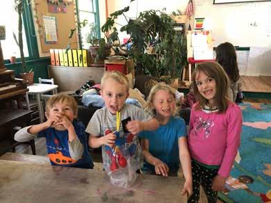 Our Marble School K-2 class has been busy learning about the Human body this month and enthusiastically getting their hands dirty in several experiments demonstrating the locations and functions of our organs. They started out learning about the heart and creating a model of blood in mason jars to show the various components. Next they learned about the lungs, how it works with the heart in delivering fresh oxygen, and removing carbon dioxide from our body. We discovered that trees are good partners! They created a balloon model of the lungs and diaphragm to demonstrate how this strong muscle helps our lungs to inhale and exhale. Next, they will be learning about the organs involved in our digestive system and will be replicating the process of chewing to the resulting “poop” (bananas and crackers) which will end up in their mock toilets. This should be a fun, yucky, hands-on experiment they won’t forget. Along the way, they have been coloring and cutting out images of their organs which they will use to make their life size paper bag models. They can wear these and show off their AMAZING BODIES!