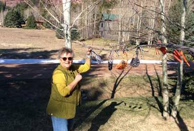 A big THANK YOU to Jimmie Benedict, who has been a star sewer for the Crystal River Valley. She also outfitted many of us with hand sewn masks, which she safely distributed by hanging on her front yard choke cherry tree (photo bottom right).