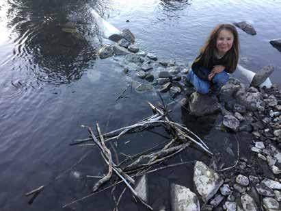 The current starts to get stronger and big boulders stand out of the water. The bank gets smaller and rockier and I jump from rock to rock. I stop on a rock and wait for the raft. It gets stuck on a rock a little ways out in front of me. I hold it with my stick and get it closer to me so I can get it out of the water. It slips away from the rock and starts going down the river again. Once more I start running down further and my mom says to come back. I kept running and replied “Just one more try!” My mom yells back, “No, come on!” I kept running and went out on a flat rock and waited watching the raft the whole time. When it passed I was now able to grab it and pull it out of the water.