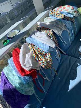 The ladies of Redstone have been busy sewing scrub caps; last month, 119 caps were made and given to Valley View Hospital all from the the nimple fingers of Jimmie Benedict, Stephanie Askew, Deb McCormmick, Mary Dorais, and April Carver.
