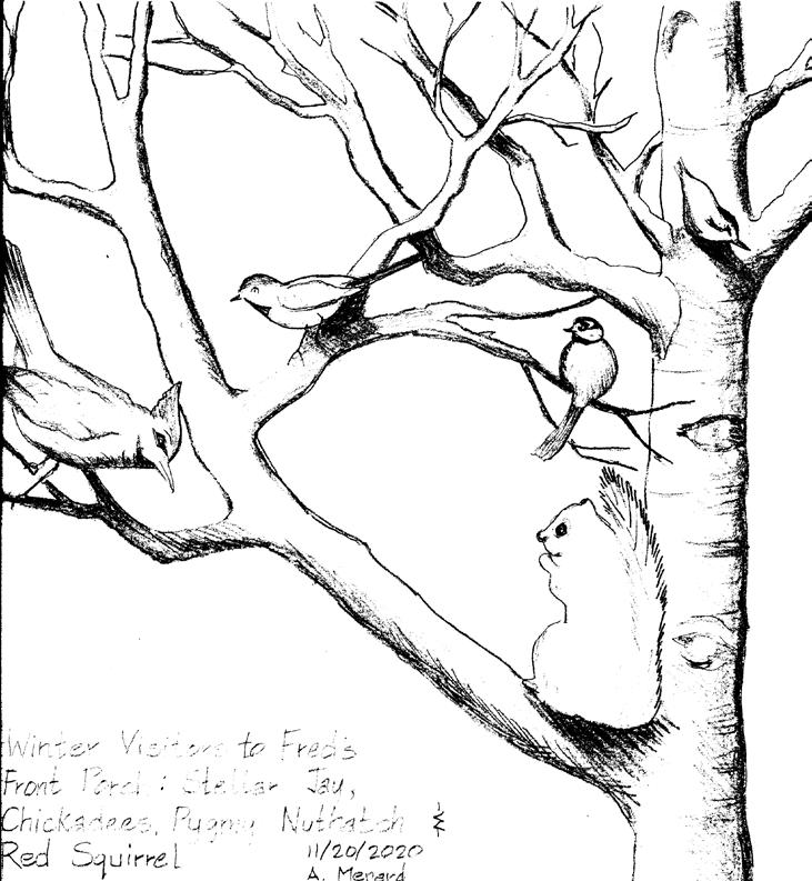 Winter birdwatching includes common winter residents: The Black-capped Chickadee, Pygmy nuthatch, and Stellar’s