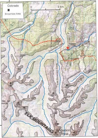 The Snowmass Creek glacier formed during the Penultimate Glacial Period (lasting approximately 135,000-194,000 years ago) named Bull Lake glaciation. The glacier began at the foot of the Maroon Bells and advanced down valley approximately 16-miles reaching a thickness greater than 800-feet. The glacier was thick enough to overtop the ridge separating Snowmass Creek and Brush Creek valleys.