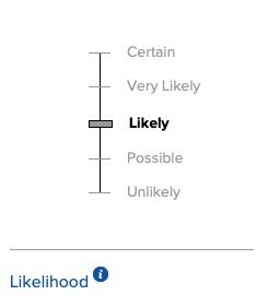 Likelihood describes the chance of triggering an avalanche in the specified terrain. It can change from day to day and in some cases, hour to hour. The rating given represents the highest likelihood of avalanche expected on that day. It is important to note that it considers both natural and human triggered avalanches.