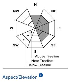 The outer ring represents the lowest area or Below Treeline, the middle ring is Near Treeline, and the inner ring represents the highest elevation or Above Treeline. In the diagram above, the avalanche problem is most likely to occur near and below the treeline in all directions.