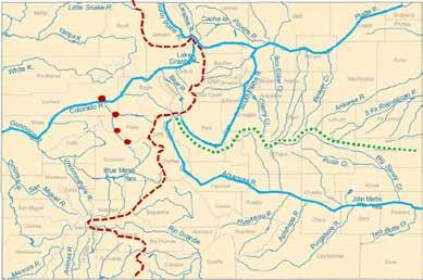 Finally, the Colorado River’s headwaters are in Grand County, the Eagle River joins the Colorado at Dotsero before entering Glenwood Canyon. The Roaring Fork River joins the Colorado at Glenwood Springs after having been joined by the Fryingpan River at Basalt, and the Crystal River at Carbondale (Figure 4). The Colorado River flows southwest through the Grand Canyon all the way to the Gulf of California.