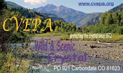 Today, our wealth in this valley can be measured in terms of environmental quality. This is true whether you are a businessperson who depends on tourism or just a person who chose to live here because you love the way it is. We are holding more wealth now than any of those earlier visitors. The Crystal Valley Environmental Protection Association (CVEPA) has been protecting this wealth since 1972.