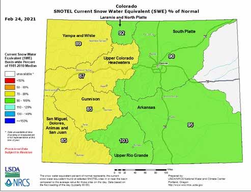 As Crystal Valley residents, we are a part of the upper Colorado Headwaters watershed. It is at 87% of the average snowpack this year (as of February 24, 2021). According to Gratz, “snowpack is the amount of water that is contained within the snow that’s currently on the ground.”