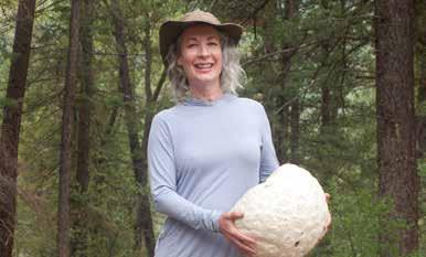 Tracey Harris with a puffball mushroom. Photo by Alex Menard.