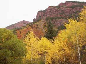 bright burgundy leaves to compliment red stems and white berries. On sunny south-facing slopes, Scrub Oak (Quercus gambelii) spreads its rusty red, accompanied by Chokecherry (Prunus virginiana) which turns ruby red.
