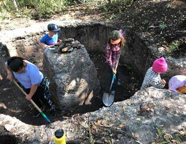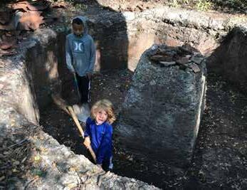 Tobin and Myra were using a shovel and McCloud to get dirt out. There three concrete pits with stairs at the bottom and a pillar in the middle were used to polish marble, a beautiful stone that our town is named after. I looked up to see Auggie and Nina sprinkling wildflower seeds on a pile of soil that we had just got out of the pit. After a while it was time to meet back up at the stage in the middle of the millsite park.