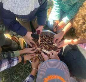 At the end of October, the whole school got a chance to visit one of the farms that their food will be sourced from, Thistle Whistle Farm in Paonia. There, the children were able to feed baby goats, process corn into popcorn, and work various educational stations the farm set up. They also got a chance to learn about and taste different greens and herbs that will soon be part of their lunches.