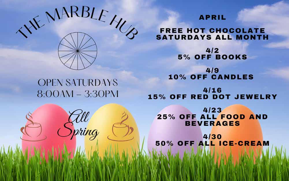 Each vendor will set up at a designated spot alongside other businesses throughout the Town of Marble, and specifically at The Marble Gallery, Abstract Marble, The Marble Hub, and on the corner next to Slow Goovin' BBQ, near Thompson Park.
