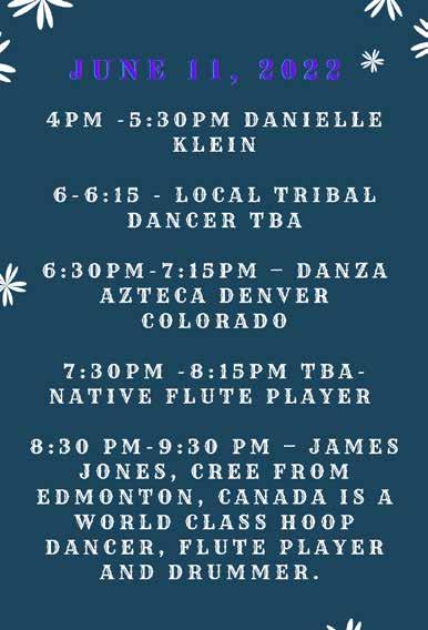 8:30 p.m. - 9:30 p.m. — James Jones, Cree from Edmonton, Canada, is a World Class Hoop Dancer, flute player, and drummer.