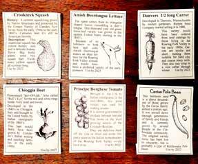Besides education, the main purpose is to save and promote these chosen garden varieties. Gray collects the seeds and offers packets for sale at the Thompson House and Dinkel Mercantile. In the fall, bulbils of the Ferguson Walking Onion are dug and sold.