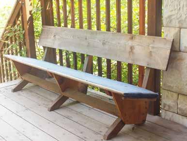 Materials used for the benches included full dimension two-inch lumber for the frame and wide one-inch boards for the seat and back. Wool batting was used for padding, under canvas tacked down. The way the pieces are designed to fit together is remarkable. After 72 years of use, mostly outdoors, the benches are still sturdy even though they are simply nailed together.