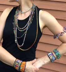 No one seeing her work would ever guess that she is selftaught, her necklaces are long ropes of colors that twist and wind, and her bracelets are like woven paintings. Each piece she creates is unique in color and design and completely hand-crafted by Salomon.
