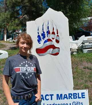 Outside Abstract Marble, on your way into town, you'll encounter a bear’s paw painted in the colors and patterns of an American flag on a standing stone of marble. Step inside the gallery, and you'll discover paintings on pieces of marble scattered throughout the building with designs ranging from roses and butterflies to a forest lake at sunset, from a full moon rising behind bare tree branches to