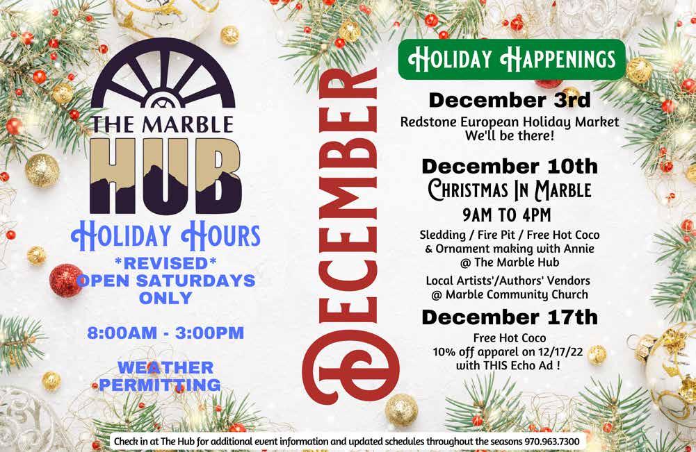 Marble resident Chris Palmer pointed out that there were perhaps missed revenue opportunities from the Marble Campsite. This ignited a lively discussion encompassing suggestions that the season could be extended to accommodate fall hunters and Marble’s competitive position vs the KOA just down the valley.