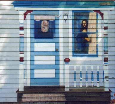 At first, he commissioned Carr to paint a window, but after studying the scene he came back wanting to do more than a window, instead, he painted a porch that was the exact copy of one found just two doors down.