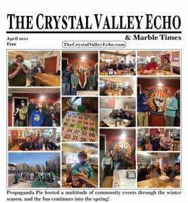 The Crystal Valley Echo is published monthly, and is distributed throughout the Crystal Valley.