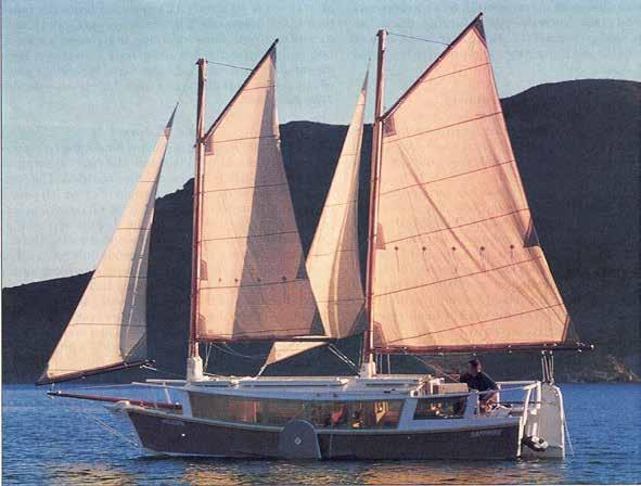 Gogan continued, “Bolger designed the boat with leeboards. Very few boats around here have them. So, many people who see the boat ask me what they are for and I tell them they enable sailing in much shallower waters than most cruising boats. We can easily sail to kneedeep waters for landing. Sailing her is a little challenging as she is what Bolger calls 'tender,' or tipsy. Though we cannot sail in winds over 15 knots, we love the 360° views, hatches for sky views and fresh air, and interior space aboard. My wife and I are grateful to Bill Jochems for inspiring, and constructing, such a fun, distinctive schooner that we’ve been sailing since 2015."