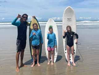 We woke up the next morning ready for a family surf lesson with Jesus. Jesus was teaching me to ride bigger waves by paddling further away from shore. Once we were all done with our surf lesson with Jesus, we surfed with just our family for a little while longer. After that, we were