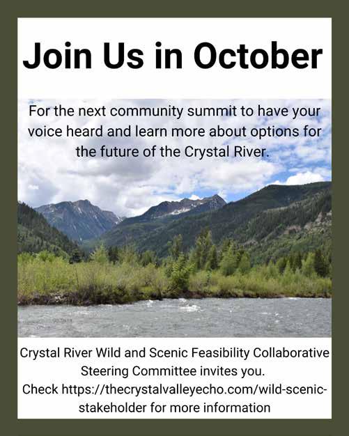 Mission Statement: To provide a voice for the residents of the Crystal River Valley; to bring attention to the individuals and local businesses that are the fabric of the Crystal Valley region; to contribute to the vitality of our small town life.