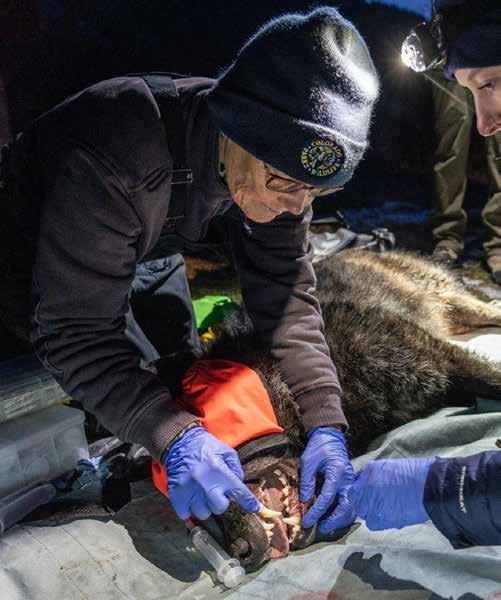 Each gray wolf was weighed and measured. Staff collected genetic material — tissue and blood samples — before fitting each with a GPS satellite collar for tracking upon release. Then, the wolves were given vaccines, placed in crates, and flown to Colorado for release back into the wild.
