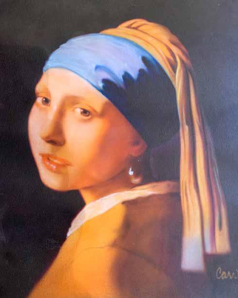 Kevin Kelly had Carr do a private portrait on a building behind his house. “I asked him to do Vermeer’s Girl with A Pearl Earring,” he said. “I wanted it to be for Redstoners who use the road back there. Over the years, it’s rotted off from the sun. He did the same portrait on canvas, so I’m putting that out there, protected from the elements.