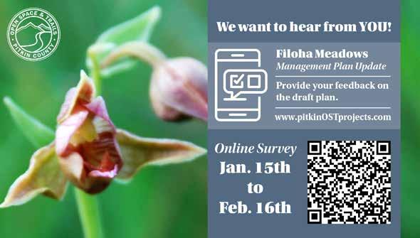 A draft management plan for Filoha Meadows Nature Preserve and adjacent properties in the Crystal River Valley is open to public feedback from Jan 15 to Feb 16 The updated plan addresses not only Filoha Meadows, but two adjacent parcels that were acquired after the original Filoha management plan was approved in 2008