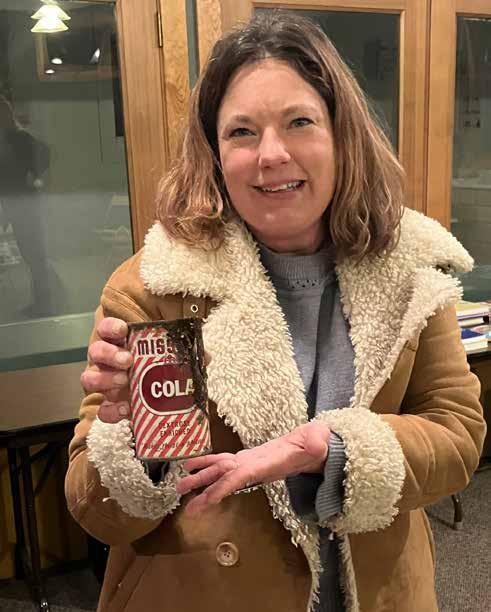 The last meeting of the year was mercifully short and sweet. Entering the Fellowship Hall, attendees were greeted by a smiling Emma Bielski standing behind a large table of swag recently unearthed from the foundations of the Historical Jailhouse building in Thompson Park, on the east side of town. Beaming Bielski was joined by her husband Mike Yellico and their delightful stringy and energetic toddler Evelyn, apparently an avid climber just like her father.
