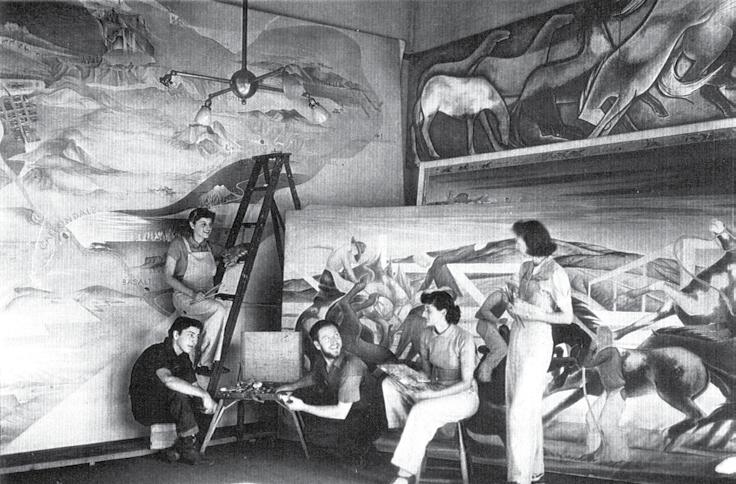The year 1934 proved to be a monumental year for Mechau. He received his first of many mural commissions through the New Deal’s Public Works of Art Program (PWAP), painting the successful “Horses at Night” for the Denver Public Library. In May 1934, Mechau was awarded the prestigious Guggenheim Fellowship, becoming the first Colorado artist to achieve this honor. The Guggenheim Fellowship provided financial support over the course of a year for promising intellectuals and creatives who were required to spend their year of study abroad.