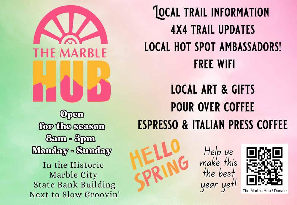 The Marble Town Council meets on the rst Thursday of each month starting at 6 p.m. in the Marble Community Church’s Fellowship Hall.