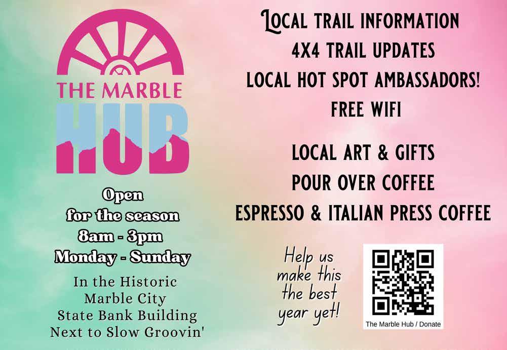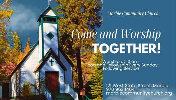 The Marble Town Council meets on the rst Thursday of each month starting at 6 p.m. in the Marble Community Church’s Fellowship Hall.