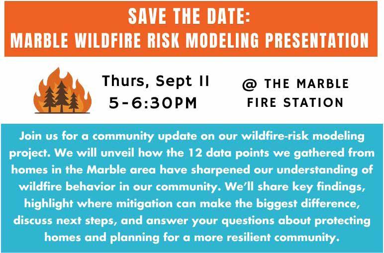 The Marble Town Council meets on the rst Thursday of each month starting at 6 p.m. in the Marble Community Church’s Fellowship Hall.