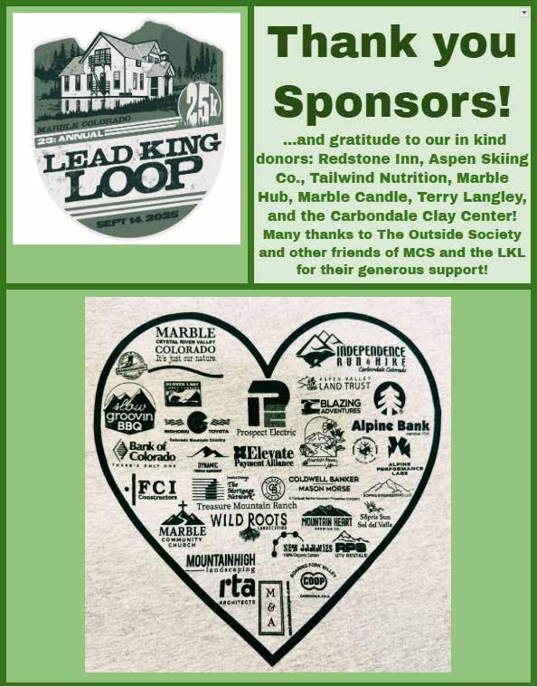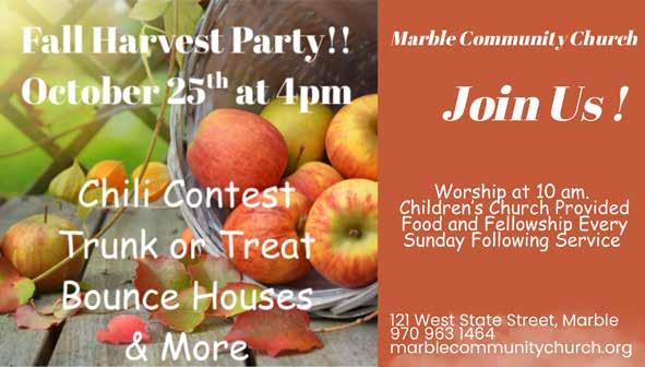 The Marble Town Council meets on the rst Thursday of each month starting at 6 p.m. in the Marble Community Church’s Fellowship Hall.