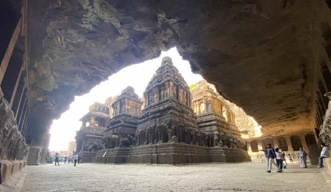 At Ellora, the scale was even grander. We climbed the Daulatabad Fort, a 12th -century military marvel, and later walked through the Kailash temple, which was chiseled from the top down