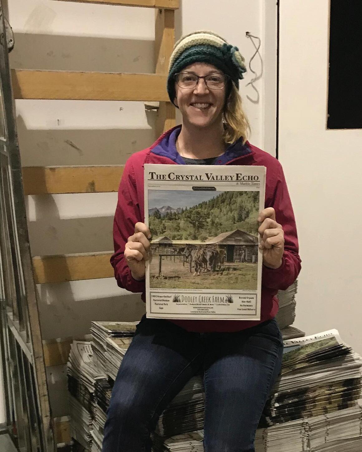 In my decision to take over The Echo, I have thought extensively about what it means to our community to have this space to share our voices, to be informed, and to keep a journal of our time here. Before I reached out to Houghton to inquire, I asked my grandmother, Dorothea Farris, for her advice, as I have done so for many steps in life. She encouraged me to pursue it, speaking of her deep love of Redstone and the Crystal River Valley, and fondly of her time helping to run The Valley Journal