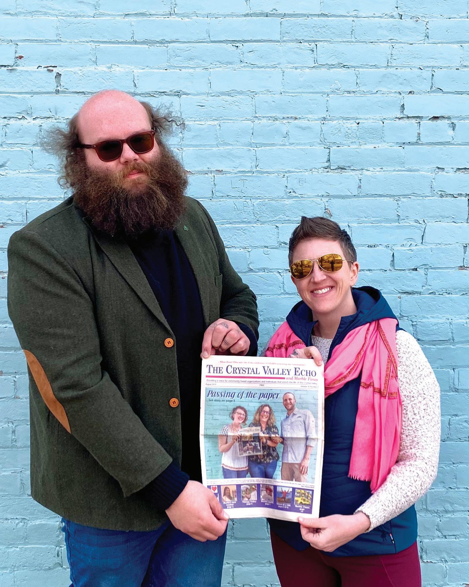 strong reverence for the people who have been here in this valley for me as I have grown up, and in this moment of coming full-circle back to The Echo, I do so with a continued dedication to my communities and to all of you who have helped me along life’s journey. It is also my solemn pride to dedicate my tenure at The Echo to Sue McEvoy, whose dedication to Redstone and the Crystal Valley was unmatched, and whose kindness in that one moment all those years ago has led me back home again.