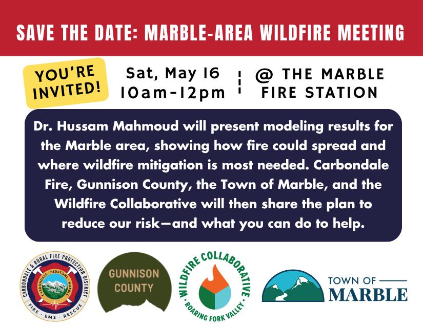 April 11th Carbondale and Rural Fire Protection District will host a meeting at the Marble Fire Station to present results from their wildfre modelling research.