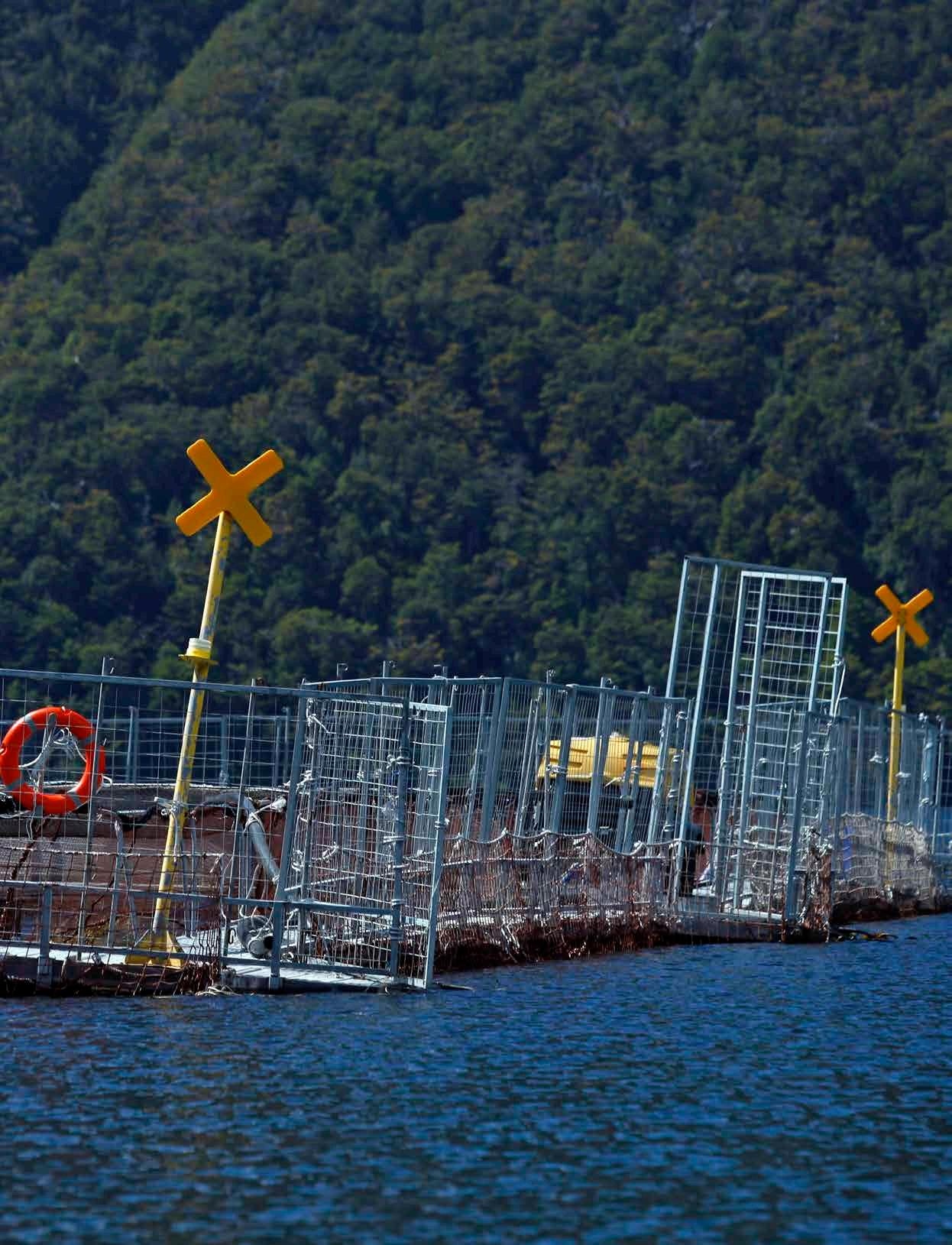 conocen muy bien qué hacer, puesto que son varias las que están permanentemente en contacto con volcanes activos. En cuanto a terremotos y tsunamis, son bastante pocos los que le ha tocado vivir a la industria del salmón. Está el evento que se produjo en 2007 en Aysén, cuando un sismo de 6,2 grados Richter provocó derrumbes y olas de hasta 6 metros que arrasaron con algunos centros de cultivo ubicados en el Fiordo Aysén, dejando alrededor de cuatro trabajadores fallecidos y/o desaparecidos. También está el terremoto ocurrido en diciembre de 2016 en Quellón (Isla de Chiloé, región de Los Lagos), que, afortunadamente, no provocó tsunami y no causó grandes perjuicios al sector.
