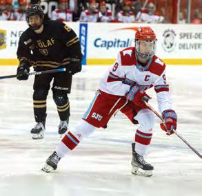 On the blue line, senior Cooper Anderson (White Bear Lake, Minn.) posted five assists in 20 games and tied for the team lead with a plus/ minus rating of +6 last season. He has nine points (1g/8a) and a +13 in 37 career games. Senior Danny Eckerline (Orono, Minn.), SJU’s mostexperienced defenseman with five points (2g/3a) in 74 career games, is back alongside a pair of juniors in Zach Enebak (Lakeville, Minn.) and Michael Spinner (Prior Lake, Minn.). Enebak touts five assists in 17 career games, while Spinner has nine points (3g/6a) and a +9 in 32 career games.