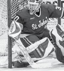 A native of Owatonna, Adam Hanna was in the words of John Harrington, “the backbone of three MIAC championships.” Hanna rewrote the record books at Saint John’s holding the career and singleseason records for wins, goals against average, save percentage and shutouts. Hanna had stunning career numbers for the Johnnies with a 1.77 goals-against average and a .927 save percentage while posting a 51-13-5 career record. In addition to his prowess between the pipes, Hanna was a member of Saint John’s MIAC champion and nationally ranked golf team.