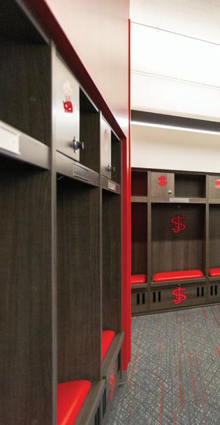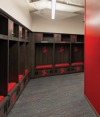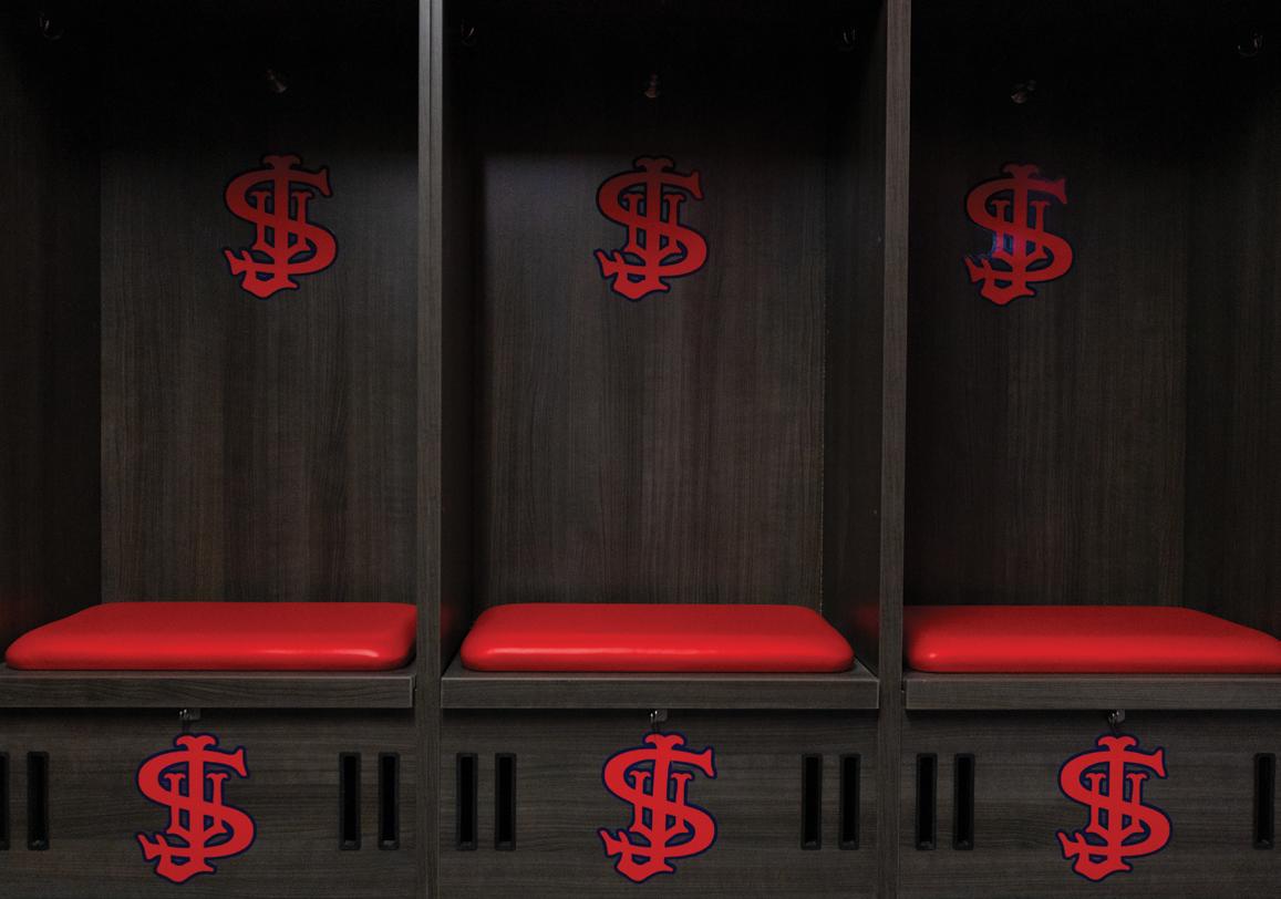 The facility – located on-site at Becker Park - features 51 lockers (plus six in the coaches’ area), showers and bathrooms, a satellite training room, a laundry room, a meeting room, a coaches’ office and a rooftop deck that can be used for viewing baseball games, as well as for tailgating prior to football games in the fall.