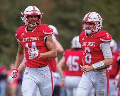 Big Day for #6: Senior quarterback Aaron Syverson finished 25 of 37 passing for a careerhigh 367 yards and four touchdowns in last Saturday’s win at Augsburg. The 300-yard passing game was the sixth of Syverson’s SJU career and his first this fall. He has passed for four touchdowns in three of the Johnnies’ four games this season.