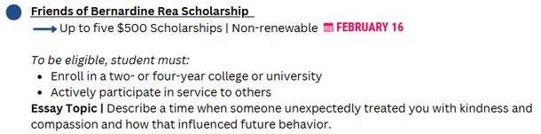 Two $250 Scholarships | Non-renewable