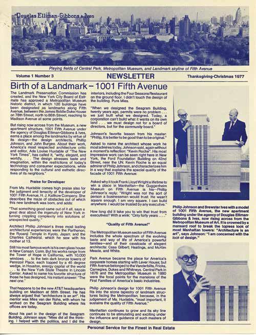 A newsletter from Douglas Elliman-Gibbons & Ives detailing the new landmark on Fifth Avenue.