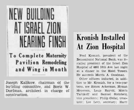 (1) The Israel Zion Hospital, later known as the Maimonides Hospital after a merger with Beth Moses Hospital in 1947, played an instrumental role during the outbreak of the 1918 flu epidemic.