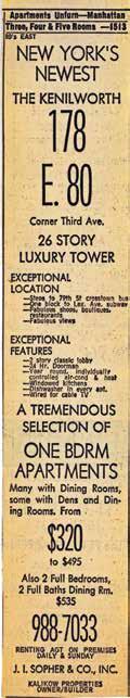 Artistic Rendering of the Kenilworth and advertisement as appeared in The New York Times (August 20, 1972)
